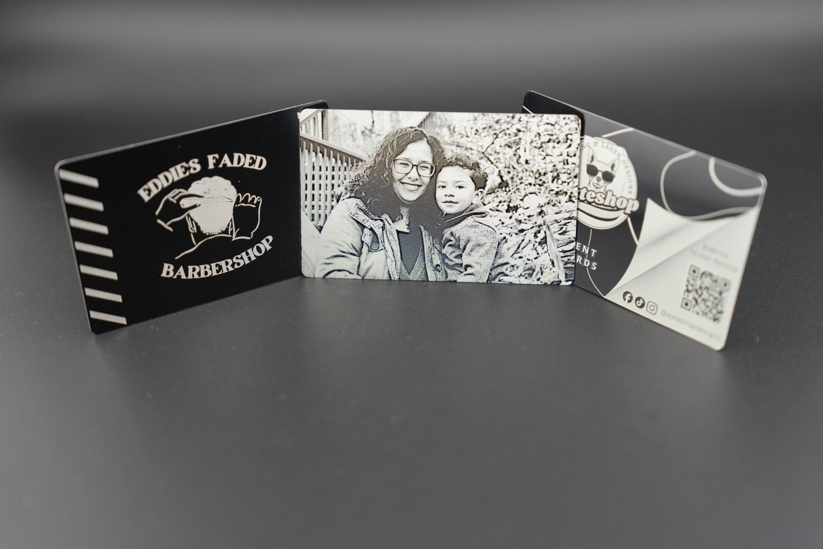 The Classic Metal Business Card delivers the impact of metal without the flash. Designed for clean branding and everyday use, this card offers a sleek metal surface with sharp laser engraving that looks professional in any industry.